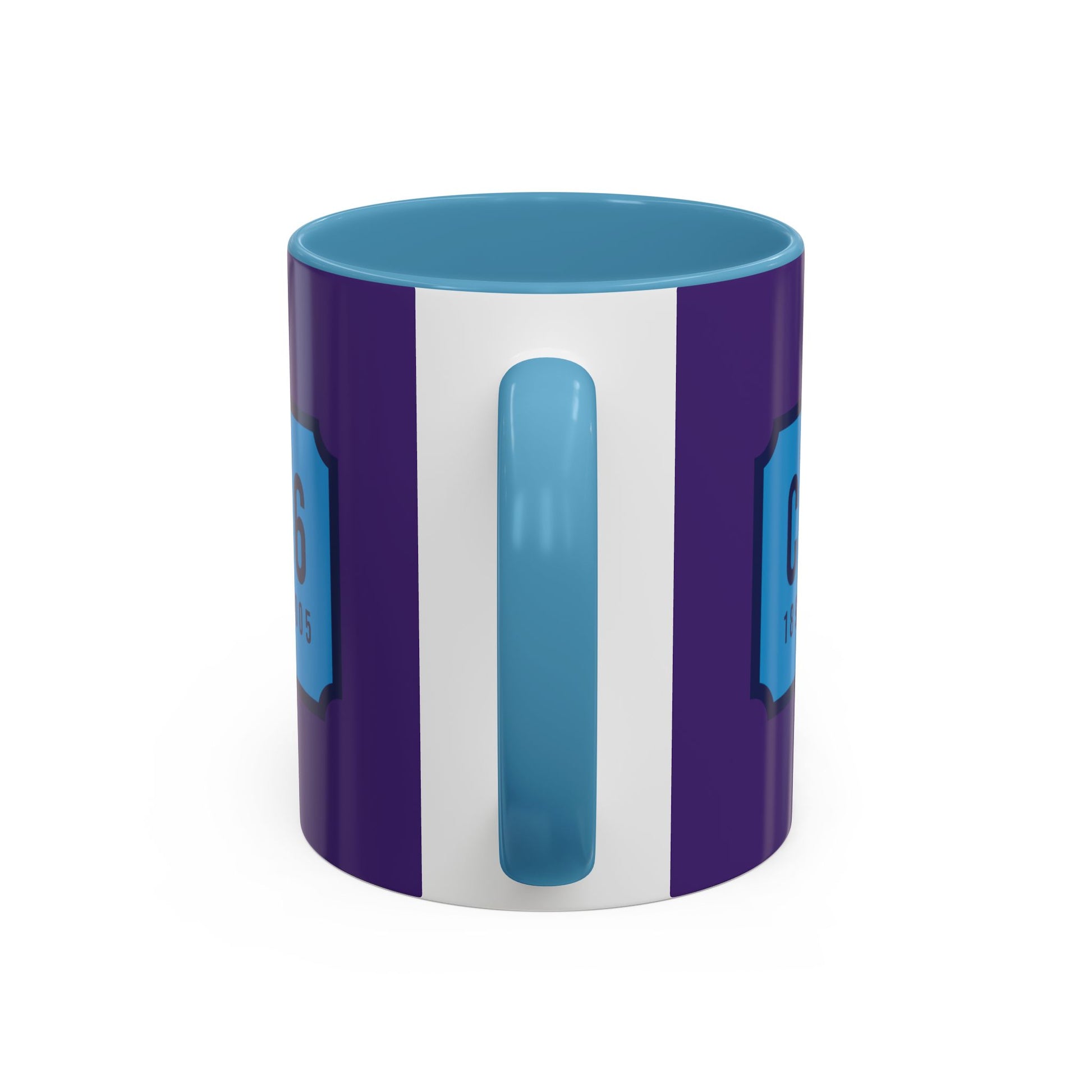 Purple and sky blue mug with sky blue badge (CV2-CV6)