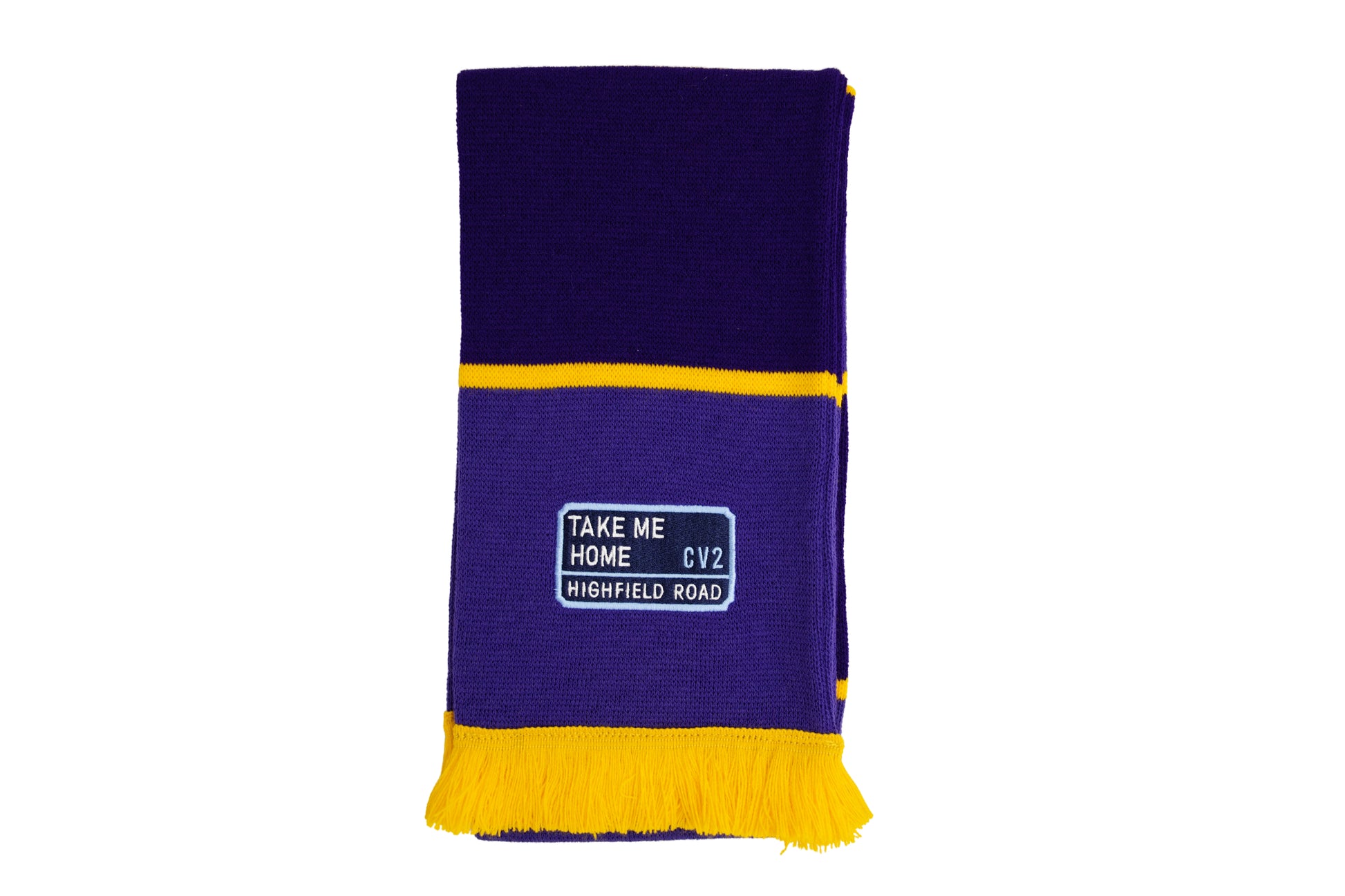 Purple scarf with navy blue embroidered badge (CV2)